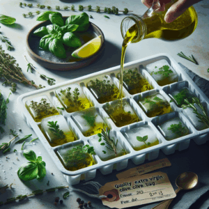🔪 Truco de cocina: Conservación de hierbas frescas en cubos de hielo de aceite Uno de los desafíos comunes en la cocina es mantener las hierbas frescas en óptimo estado, especialmente cuando las compras en racimos grandes y no planeas usarlas de inmediato. Una solución ingeniosa y práctica para evitar el desperdicio y asegurarte de tener siempre hierbas frescas a mano es crear cubos de hielo de aceite con hierbas. Este método no solo conserva su frescura, sino que también potencia los sabores de tus platos. Para aplicar este truco, primero selecciona tus hierbas frescas favoritas, como albahaca, romero, tomillo