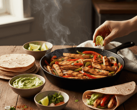 Fajitas de Pollo y Verduras con Crema de Aguacate (Salsa)