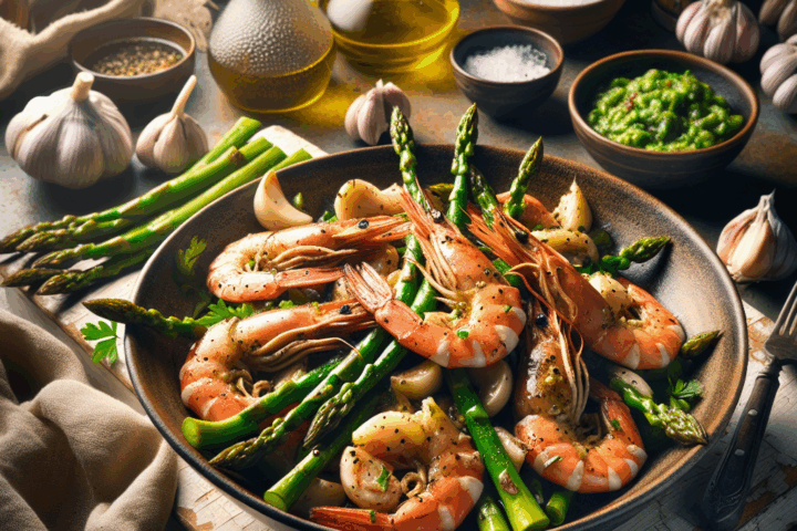 Gambas al ajillo con espárragos que huelen a gloria y saben mejor