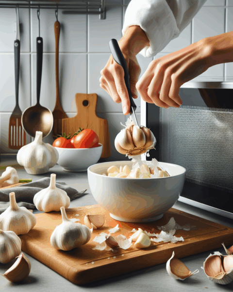 🔪 Truco de cocina Si alguna vez has cocinado con ajo, sabes lo tedioso que puede ser pelarlo, especialmente cuando necesitas muchas piezas. Un truco práctico y eficiente para pelar ajos rápidamente es usar el microondas. Para ello, coloca los dientes de ajo en un recipiente apto para microondas y