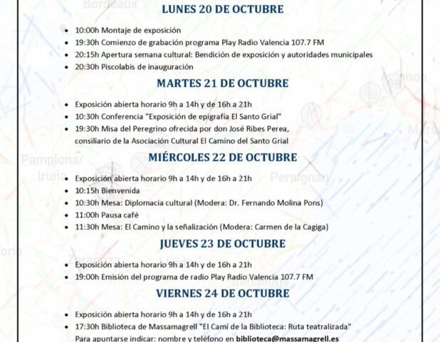 La unión de sinergias en el municipio potencia el itinerario cultural europeo. Massamagrell, Valencia – La Asociación Cultural El Camino del Santo Grial, fundada en 2002 y con sede en Massamagrell, organiza un año más su tradicional Semana Cultural, que alcanza su novena edición. El evento cuenta con la colaboración del Excelentísimo Ayuntamiento de Massamagrell, cuyo alcalde, don Francisco