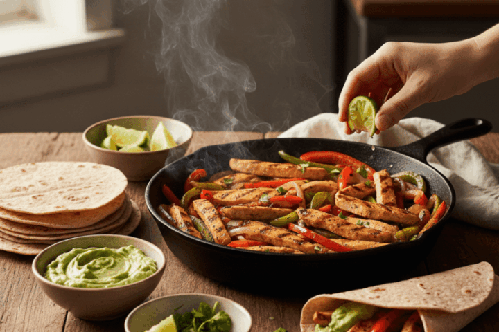 Fajitas de Pollo y Verduras con Crema de Aguacate (Salsa)