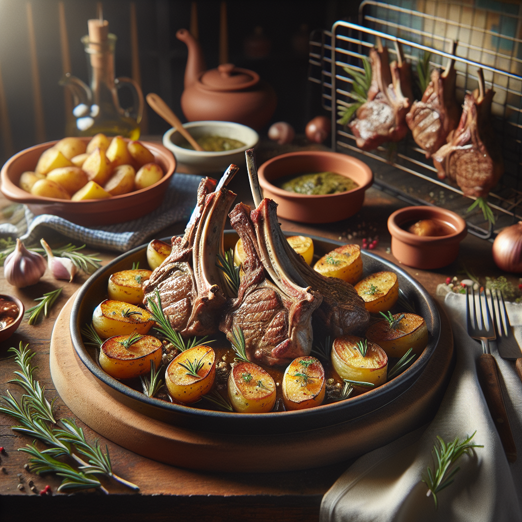 Título: Chuletillas de Cordero al Romero con Patatas Panaderas