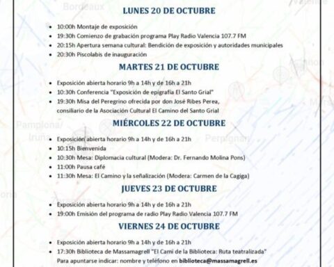La unión de sinergias en el municipio potencia el itinerario cultural europeo. Massamagrell, Valencia – La Asociación Cultural El Camino del Santo Grial, fundada en 2002 y con sede en Massamagrell, organiza un año más su tradicional Semana Cultural, que alcanza su novena edición. El evento cuenta con la