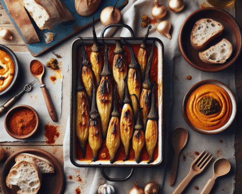 Imágenes de la RecetaIngredientesInstrucciones 🖨️ Imprimir Receta 📲 Compartir en WhatsApp Título: Calçots con salsa romesco 🍽️ Ingredientes Cantidad Ingrediente 24 Calçots 2 Tomates maduros 1 Cabeza de ajo 50 g Almendras tostadas 50 g Avellanas tostadas 1 Guindilla seca 1 rebanada Pan 100 ml Aceite de oliva virgen extra