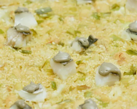 El sabor de nuestra vigilia: Paella de coliflor, ajos tiernos y bacalao